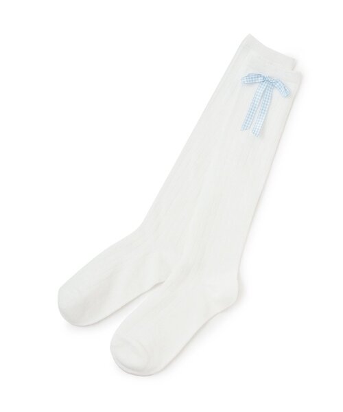 チェック柄のリボンが垂れ下がった、可愛らしいハイソックスです。