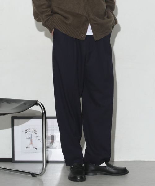 キーワード:パンツ メンズ テーパード ハイウエスト フルレングス ワイドパンツ 無地