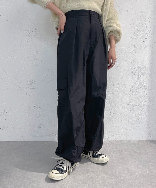 キーワード:カーゴパンツ レディース ハイウエスト フルレングス ワイドパンツ 無地
