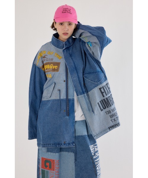 パッチワーク状にカラーの異なる生地をはぎ合わせてリメイク感を演出したモッズコート。