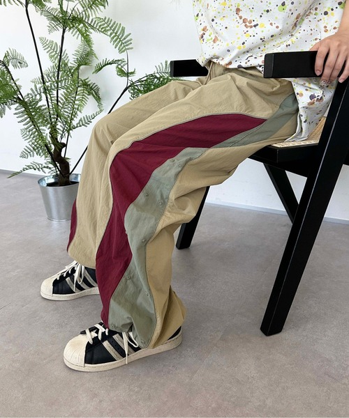 キーワード:パンツ メンズ ウエストゴム ハイウエスト フルレングス ワイドパンツ 無地