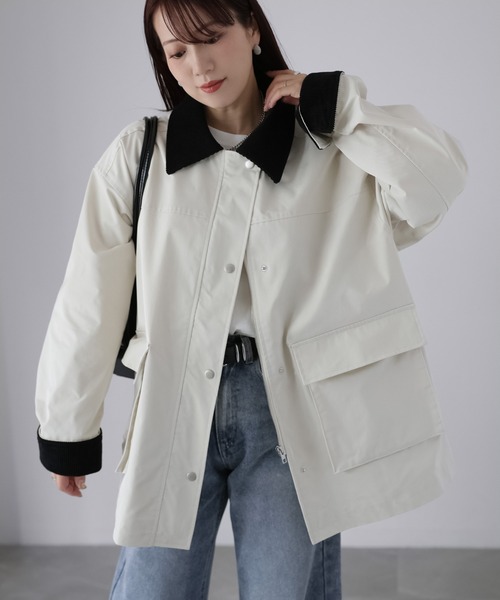 襟元と袖口の折り返し部分には、温かみのあるコーデュロイ素材をドッキング。