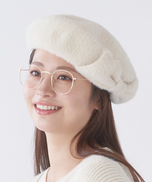アンゴラ風のふわふわヘアリーな素材感が魅力のベレー帽。