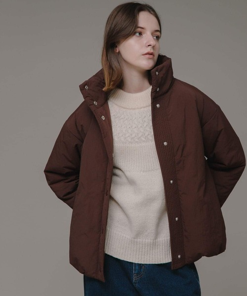 キーワード:ダウンコート ダウンジャケット レディース ナイロン ボタン 無地 秋 冬