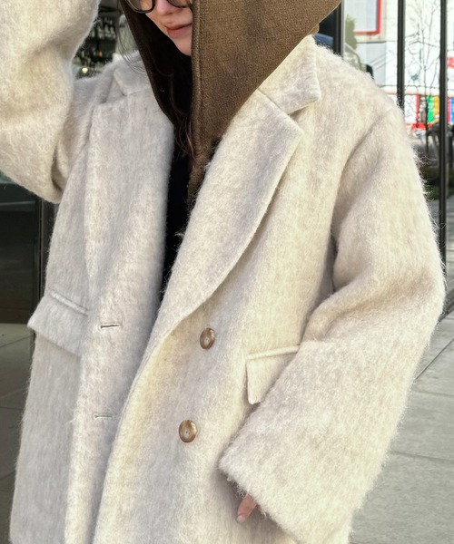 参考商品名:ダブルテーラードシャギージャケットコート