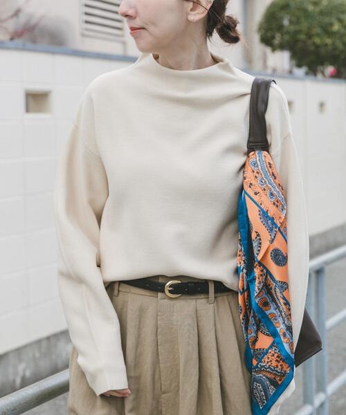 シンプルに映える、洗練ボトルネック首元に絶妙な高さを持たせたボトルネックデザインが、大人の女性らしさを演出するニット。肩のラインを少し落としたドロップショルダーが、程よい抜け感とリラックスした空気感をプラス。身体のラインを拾いすぎない柔らかなシルエットながら、袖口の長めのリブが手元をキュッと引き締め、メリハリのある着こなしを叶えます。清潔感とやさしさを併せ持つカラーは、春のスタイリングに軽やかさをプラス。細やかで滑らかな編み地は肌当たりも良く、ジャケットやコートのインナーとしても、一枚着としても主役になるクオリティです。トレンドに左右されず、長く愛用できる究極のベーシックな一着です。