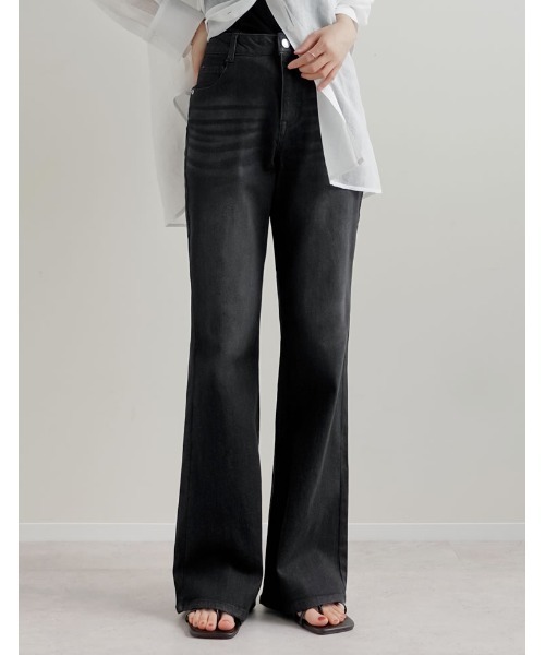 シャツブラウス、チュニック、ペプラムトップスなど、どんなトップスとも相性の良いフレアデニムです。