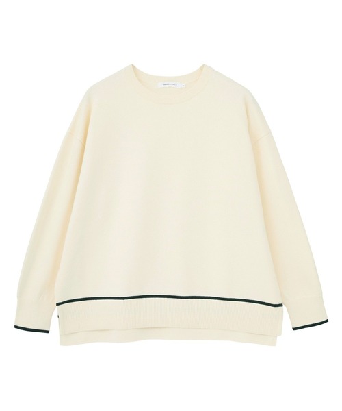 配色ラインが目を惹く、万能クルーネックニットプルオーバー。