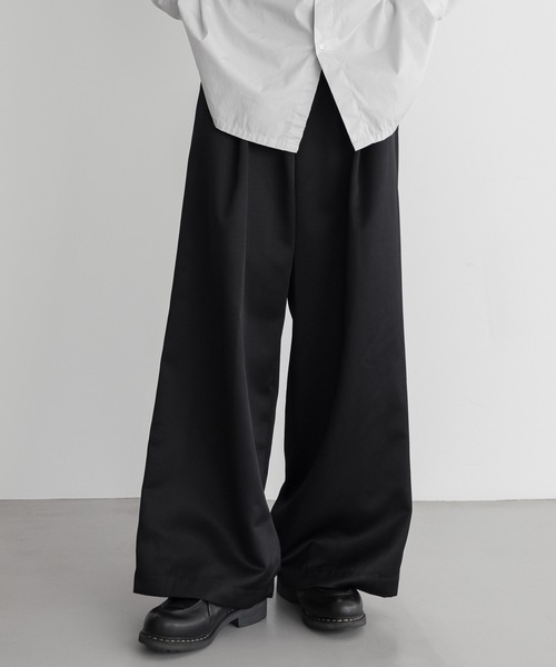 キーワード:パンツ メンズ ウエストゴム ストレート ハイウエスト フルレングス ワイドパンツ 無地