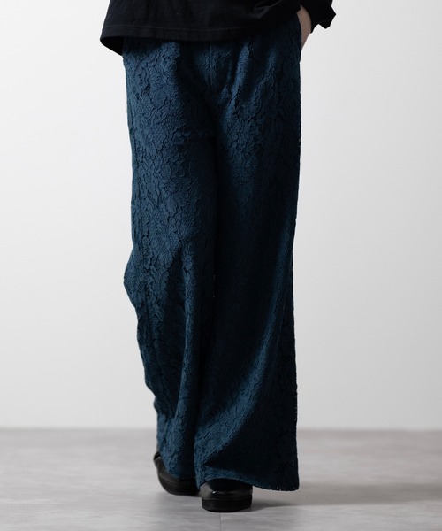 キーワード:パンツ メンズ ウエストゴム ハイウエスト フルレングス フレアパンツ レース ワイドパンツ