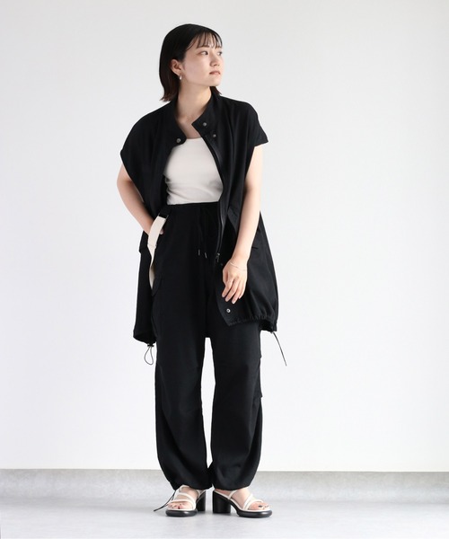 キーワード:カーゴパンツ レディース ウエストゴム スタンダード ストレート ハイウエスト フルレングス 無地