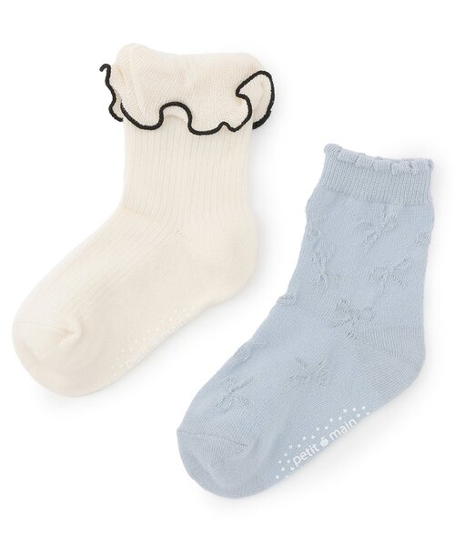 フリルデザインとリボン柄を組み合わせたクルーソックスのセットです。