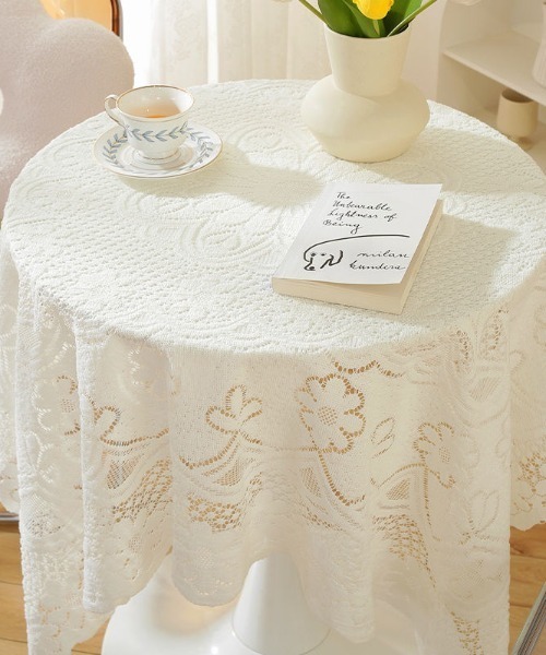 繊細なレース柄が目を惹く、上品なマルチカバー。