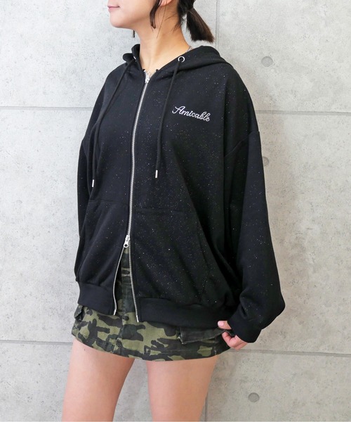 ラメ入りの裏毛素材を使用し、スポーティーな中にも華やかさを感じられる一枚です。