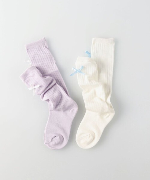 キーワード:靴下 キッズ 子供 女の子 ハイソックス リボン 無地 ガーリー 公園 新生活 保育園