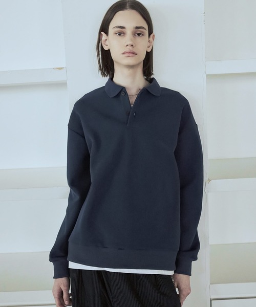 抜け感のある襟元とリラクシーなシルエットが今っぽいスウェット長袖ポロシャツ。