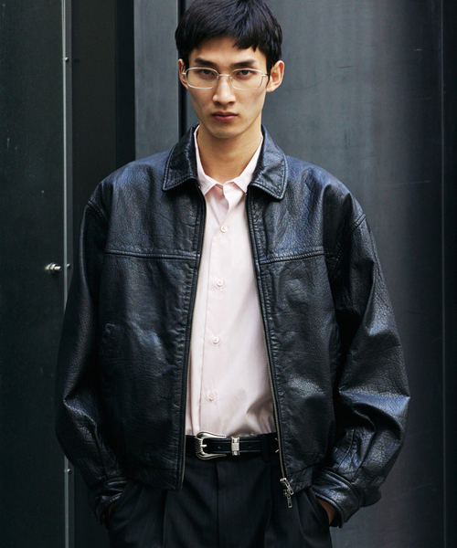 厚みを調整したバッファローレザーを使用し、無骨でタフな印象に仕上げたレザージップブルゾン。