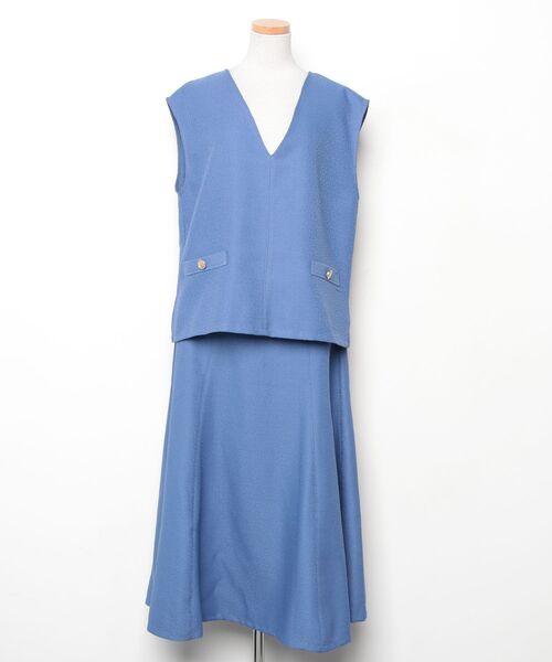 素材:オフホワイト( 003) ベスト: ポリエステル100% スカート: 表地 ポリエステル100% 裏地 ポリエステル100%ブルー( 093) ネイビー( 094) ベスト: ポリエステル100% スカート: ポリエステル100%