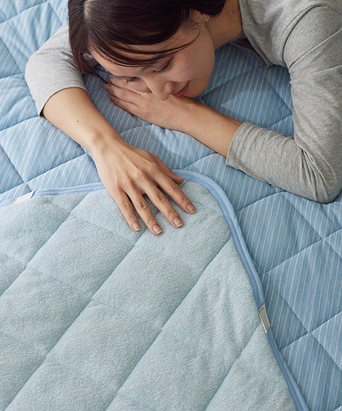片面がひんやり冷感素材、もう片面が綿混タオル地素材を使用したリバーシブルタイプの敷きパッドです。