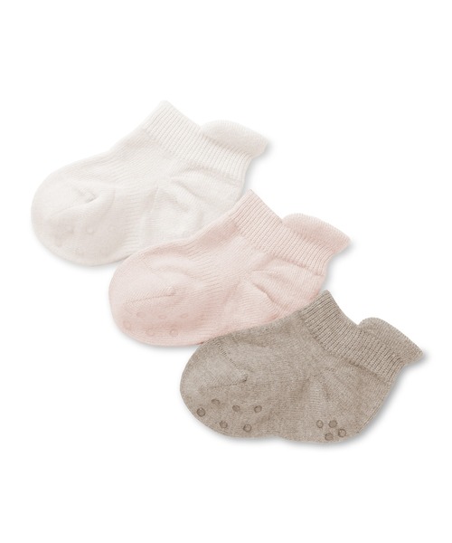 成長しても履けるよう、かかとの仕様を工夫しました。履き口の後ろには自分で履く際に持ち易い肉厚のつまみ付き。つま先に当たる縫い目が無くゴロつかない仕様。甲周りにはサポート機能を付け、脱げたりずれにくい仕様です。履き口の内側にはお名前が書ける欄があり、サイズも表示されているので次のサイズ購入時の参考になります。ベビーサイズは足裏に滑り止め付きです。綿はオーガニックコットンです。