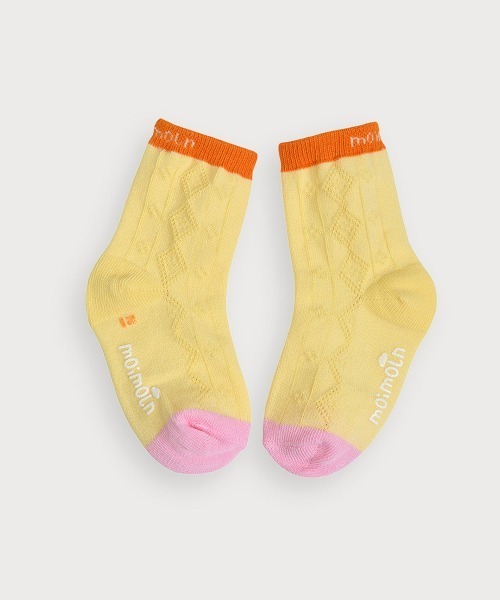 レモンカラーに可愛いピンクカラーを配色したジャカードの靴下。