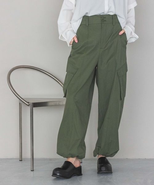 キーワード:カーゴパンツ レディース ストレート ハイウエスト フルレングス ワイドパンツ 無地