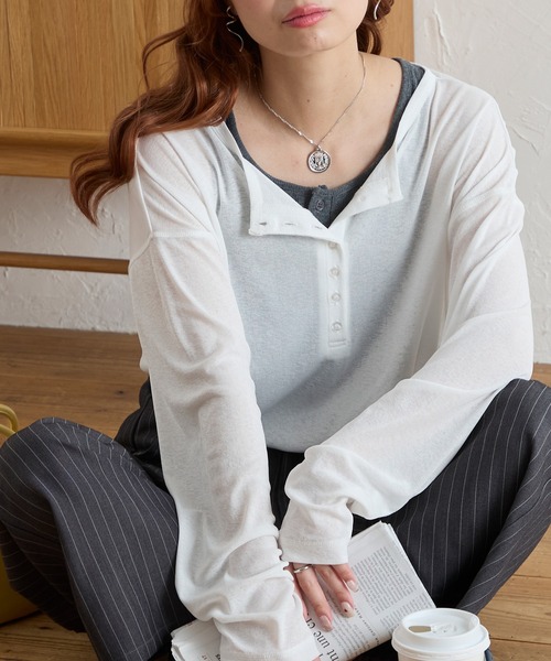 ルーズなシルエットとほんのり透け感が魅力のヘンリーネックプルオーバー。