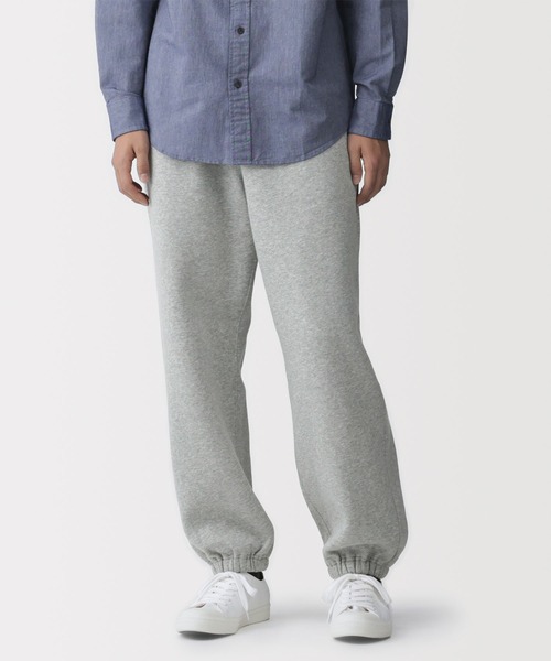 ゆとりをもたせたシルエットで、男性だけでなく女性も着やすいデザインです。適度な厚みのスウェット生地で、ワンマイルウェアとしても重宝します。ウエストには調整ひもをつけて外着としてはきやすく仕立てました。