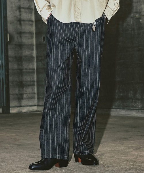クラシックな佇まいが際立つウォバッシュストライプデニムパンツ。