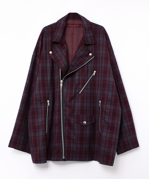キーワード:レザージャケット ライダース レディース シングル チェック ナイロン