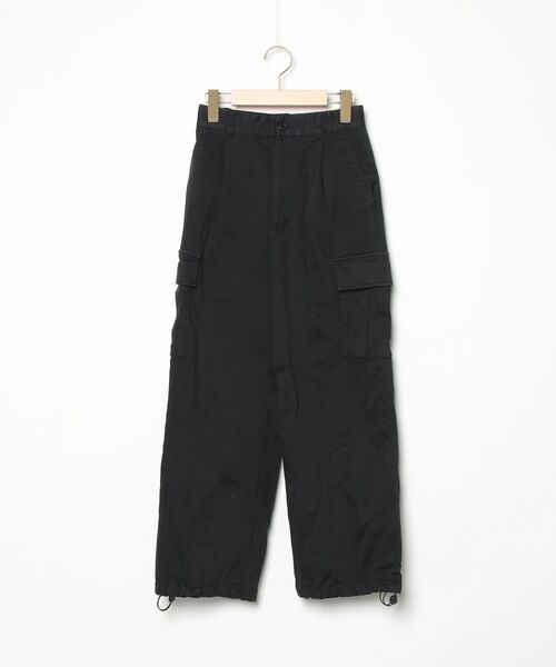 キーワード:カーゴパンツ レディース ウエストゴム ストレート ハイウエスト フルレングス ワイドパンツ 無地