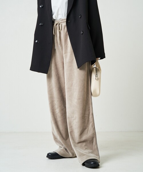 参考商品名:限定展開 カット ベロア ライン ワイドパンツ