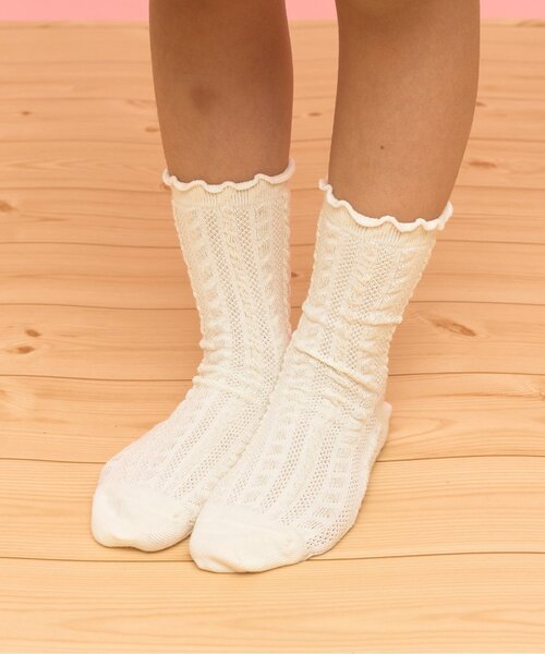 繊細な柄編みデザインが特徴のクルーソックス。