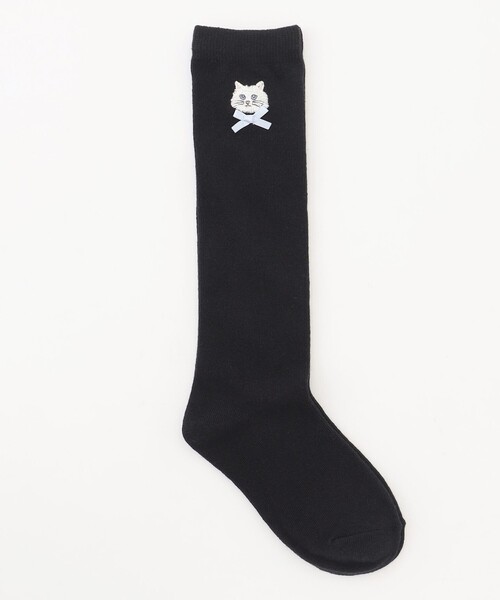 ネコ刺繍×リボンがかわいい ハイソックス