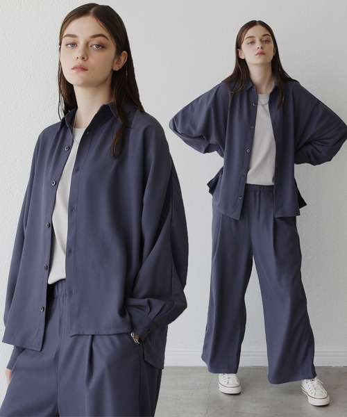 参考商品名:ドルマン長袖シャツ & バギータックワイドスラックス