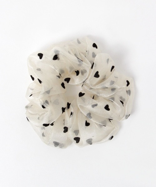 ハートをちりばめた柄がかわいらしいシュシュ。