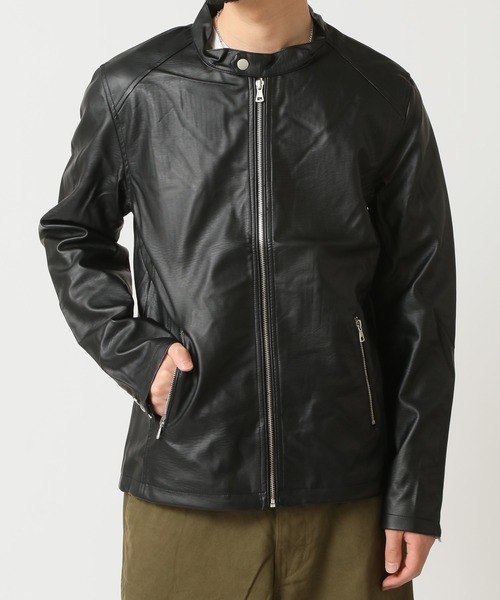 ■厳選されたPUレザー素材、高見えライダースジャケット