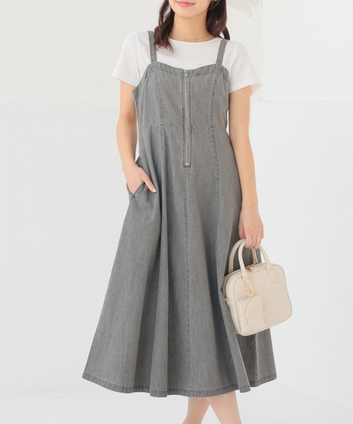 高めの切り替え位置から広がるAラインシルエットとロング丈で、スタイルアップ効果もあり大人っぽい雰囲気に。