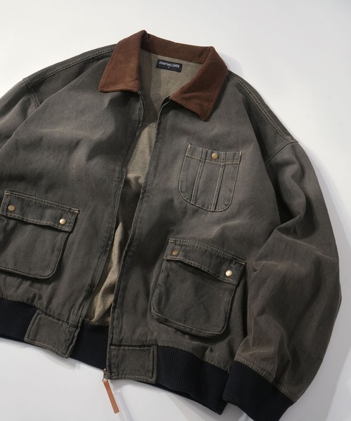 襟をコーデュロイで切り替え胸ポケットやジップ、引手までワークテイストで統一したショートブルゾン。