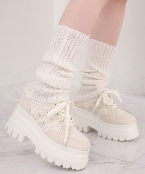 ボリューム感のあるトリプルソールが目を引くヒールスニーカー。