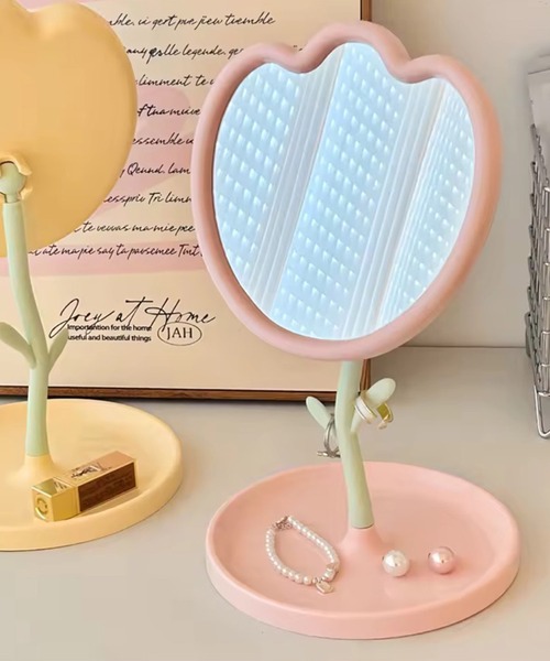 チューリップモチーフが韓国ライクな卓上ミラー。