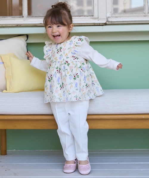 ポケットにはフリルをあしらい、さりげない可愛らしさをプラス。