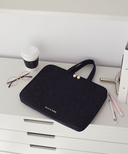 オリジナルのリボンキルティング素材を使用した、ハンドル付きのPCケース。
