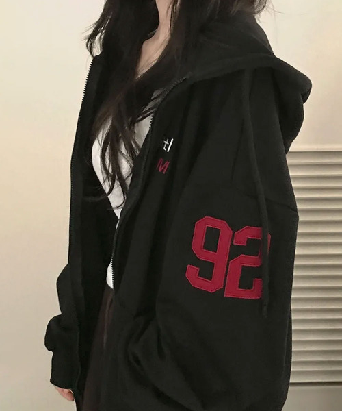 ナンバリングダブルジップオーバーサイズパーカー
