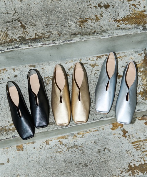 参考商品名:カットアウトスクエアトゥーフラットシューズ
