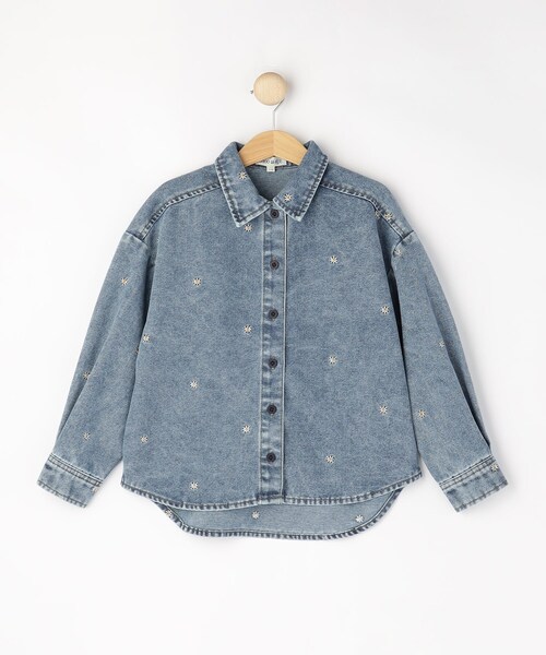 フラワー刺繍を前面に施したゆったりとしたデニムシャツ。