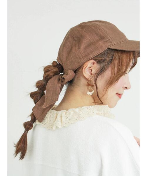 ガーリーなアクセントになるバックリボンが施されたキャップ。