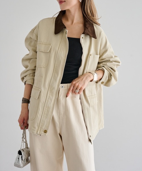 程よく厚みのある素材感で、ワークテイストを取り入れたジップカバーオール。