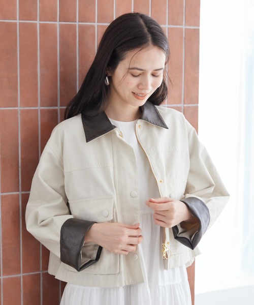 表地はコットン100%。ハリのある素材感に、バイオウォッシュで着やすさとこなれ感をプラス。襟のエコレザー使いも効いています。