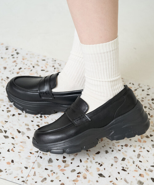 スタイルアップも見える厚底ローファースニーカー